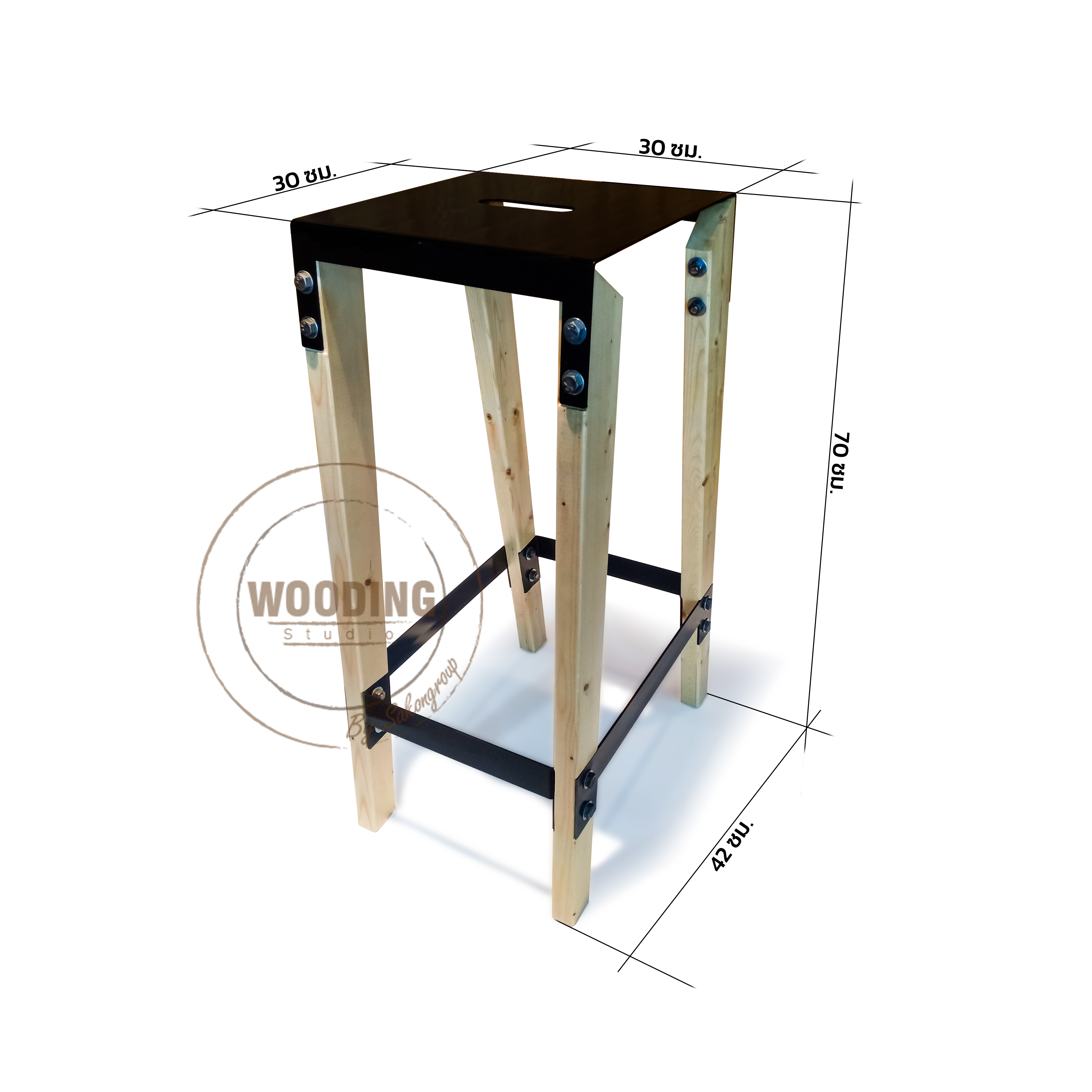 เก้าอี้สูงรูปแบบที่นั่งเหล็กประกอบขาเก้าอี้ไม้สน